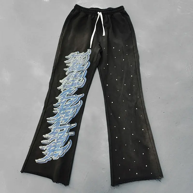 acid wash rhinestone pants