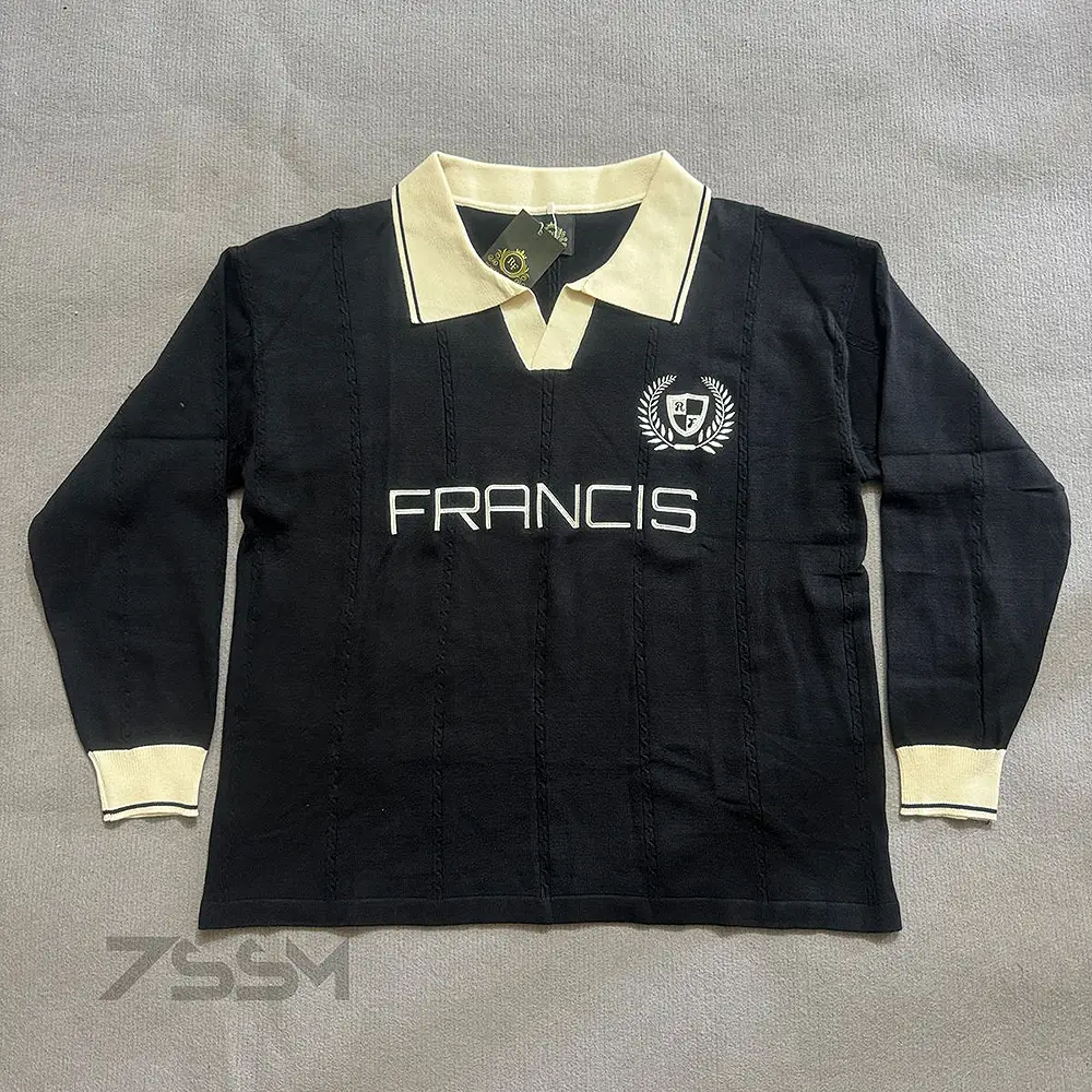 Custom Embroidery Logo Knitwear Jacquard Sweater Men Casual Striped Knitt Long Sleeve Rugby Polo Shirt for Men