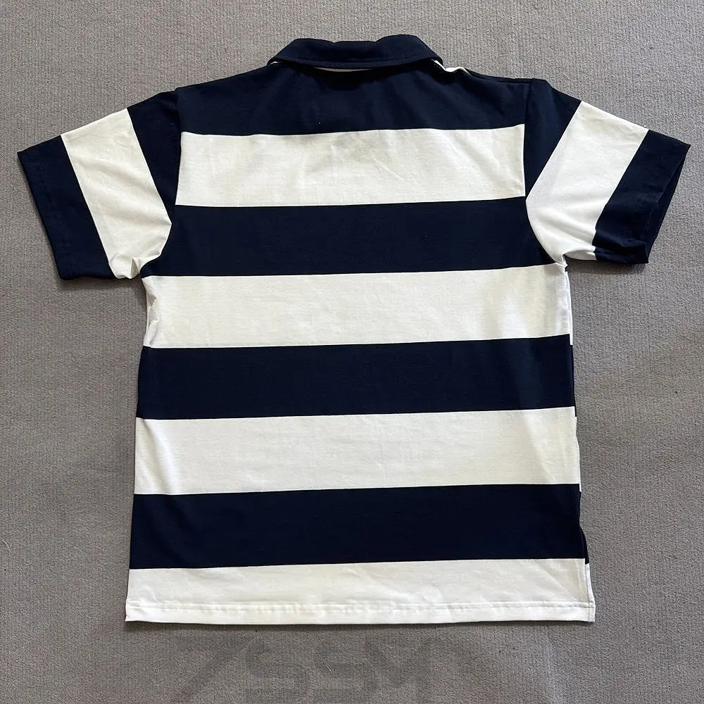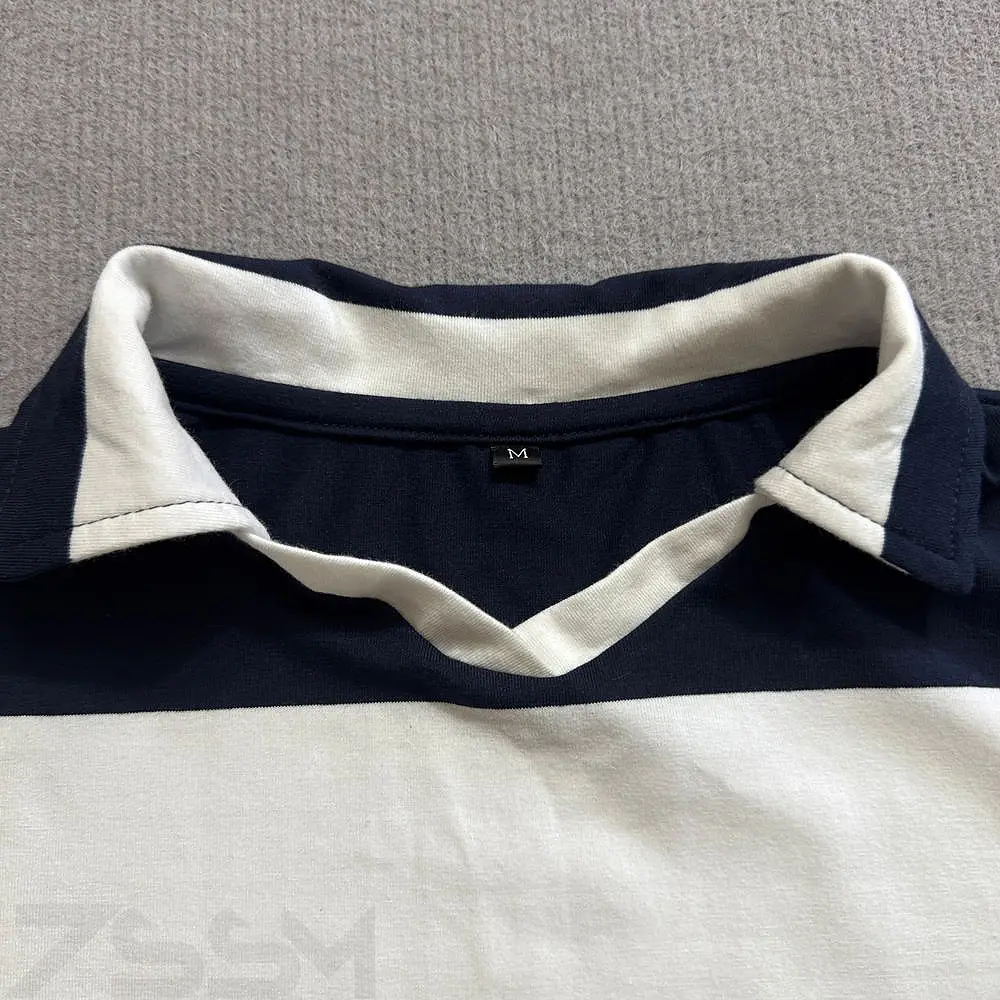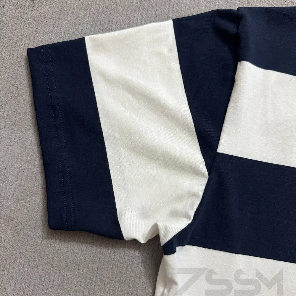 Custom Men's Cotton Oversized Cropped Boxy Stripe Cotton Rugby Jersey Patchwork Plus Size Short Sleeve Polo Shirt for Men