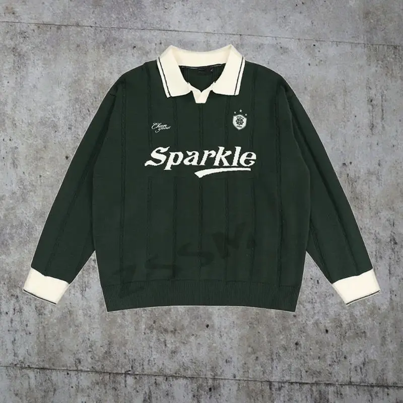Wholesale Custom Embroidered Men's Rugby POLO Shirt XL Size Cotton Twill Knit Collar Casual Long Sleeve Striped Design