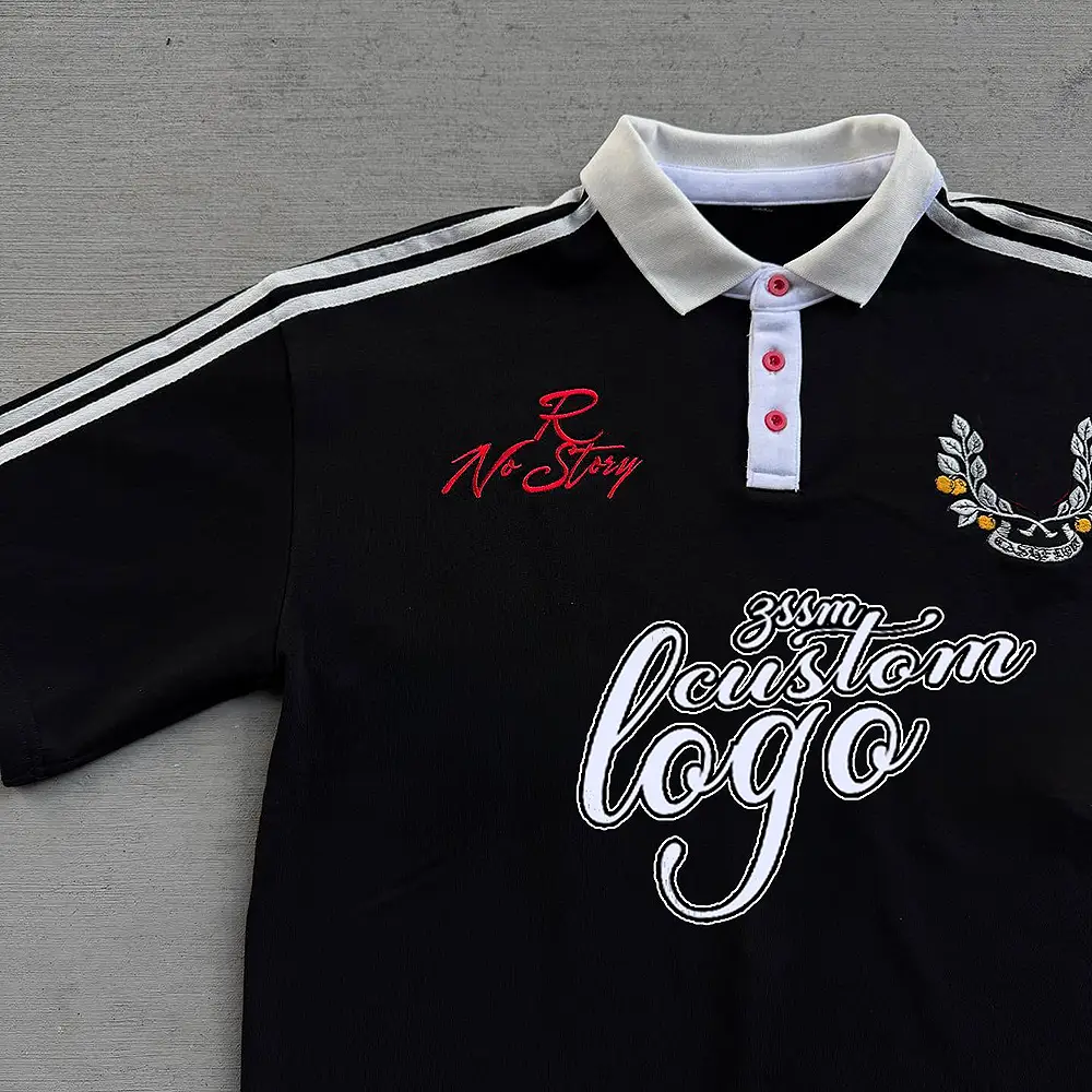 Custom Summer Heavyweight Cotton Sport Short Sleeve t Shirts Cropped Knitted Striped Boxy Embroidery Polo Shirts for Men