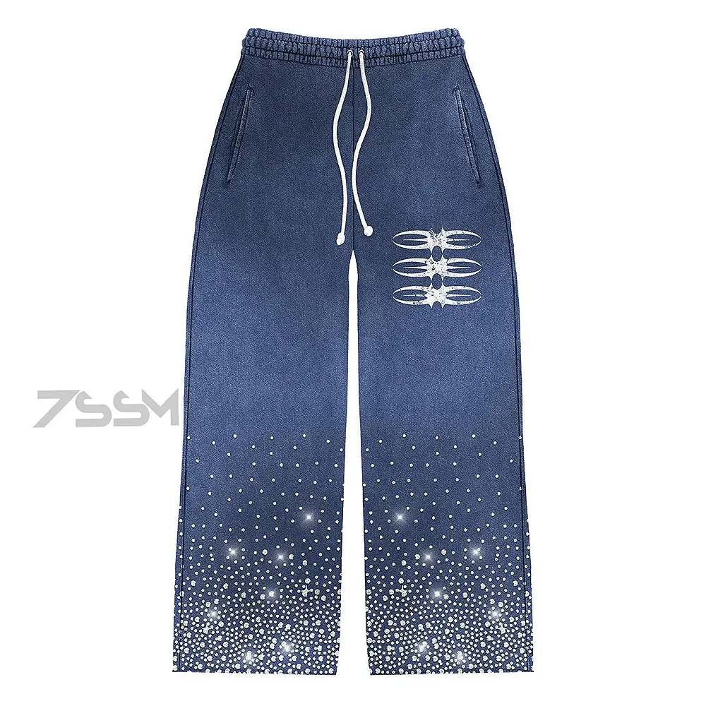 Custom Men's Track Suits Heavyweight Fleece Cotton French Terry Oversized Winter Rhinestone Hoodie and Flared Sweatpants Sets