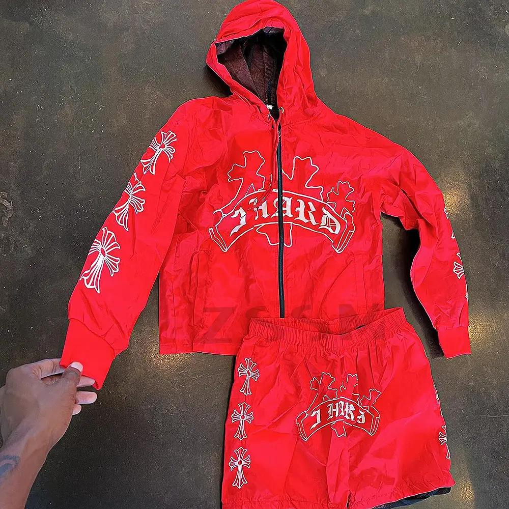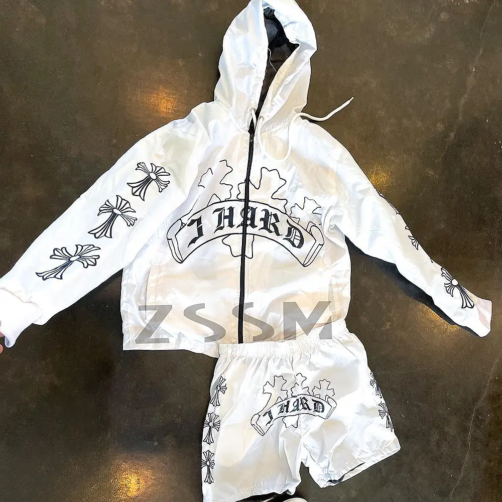 Men's New Arrival Velour Hoodie Short Set Breathable Windbreaker with Zip Autumn Two-Piece Printed Tracksuit Outerwear Set