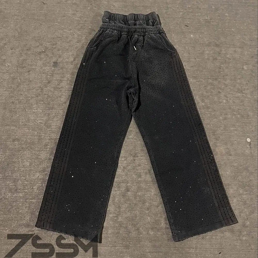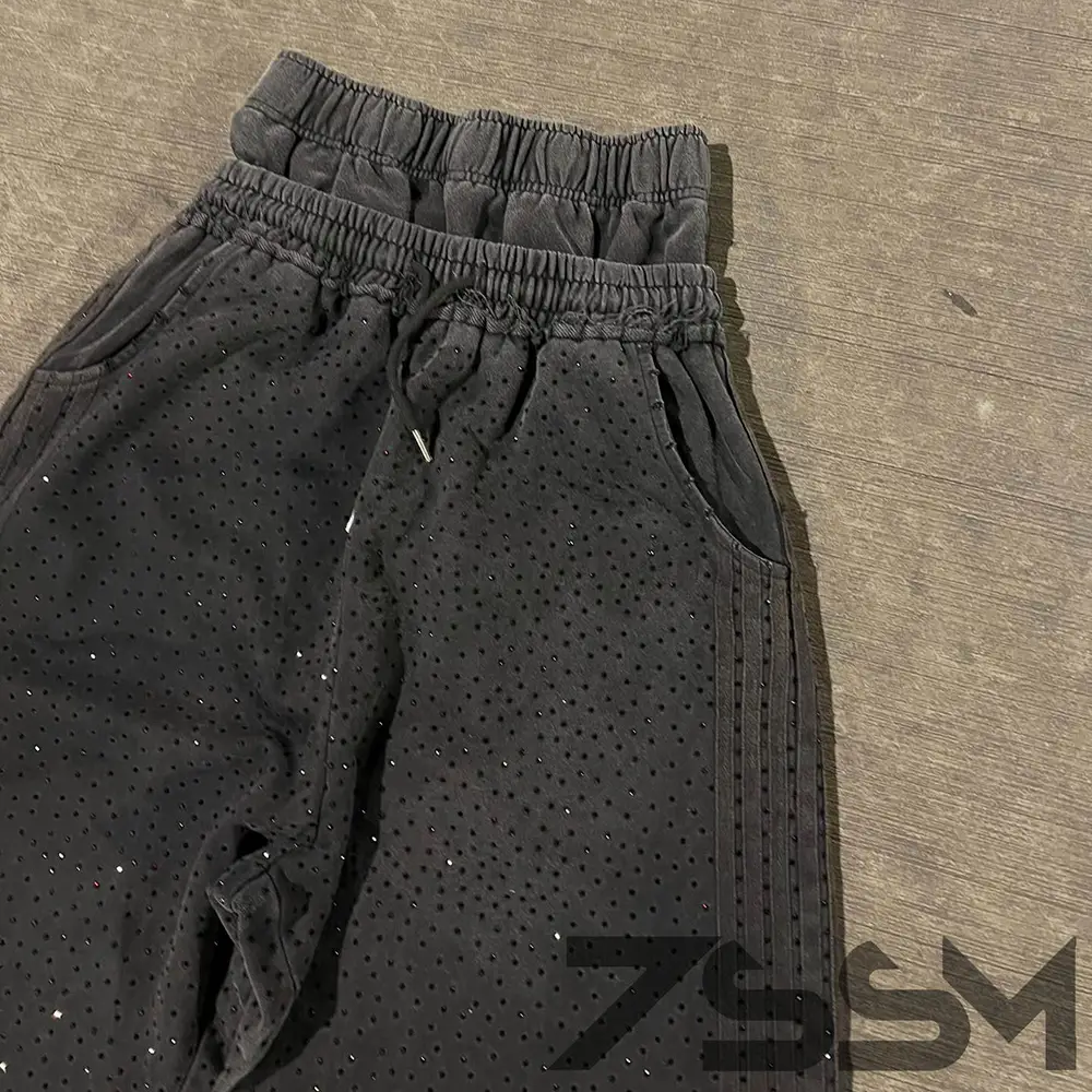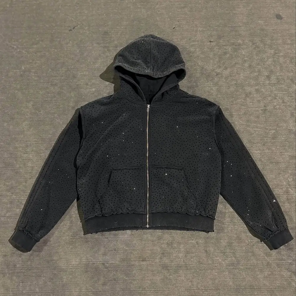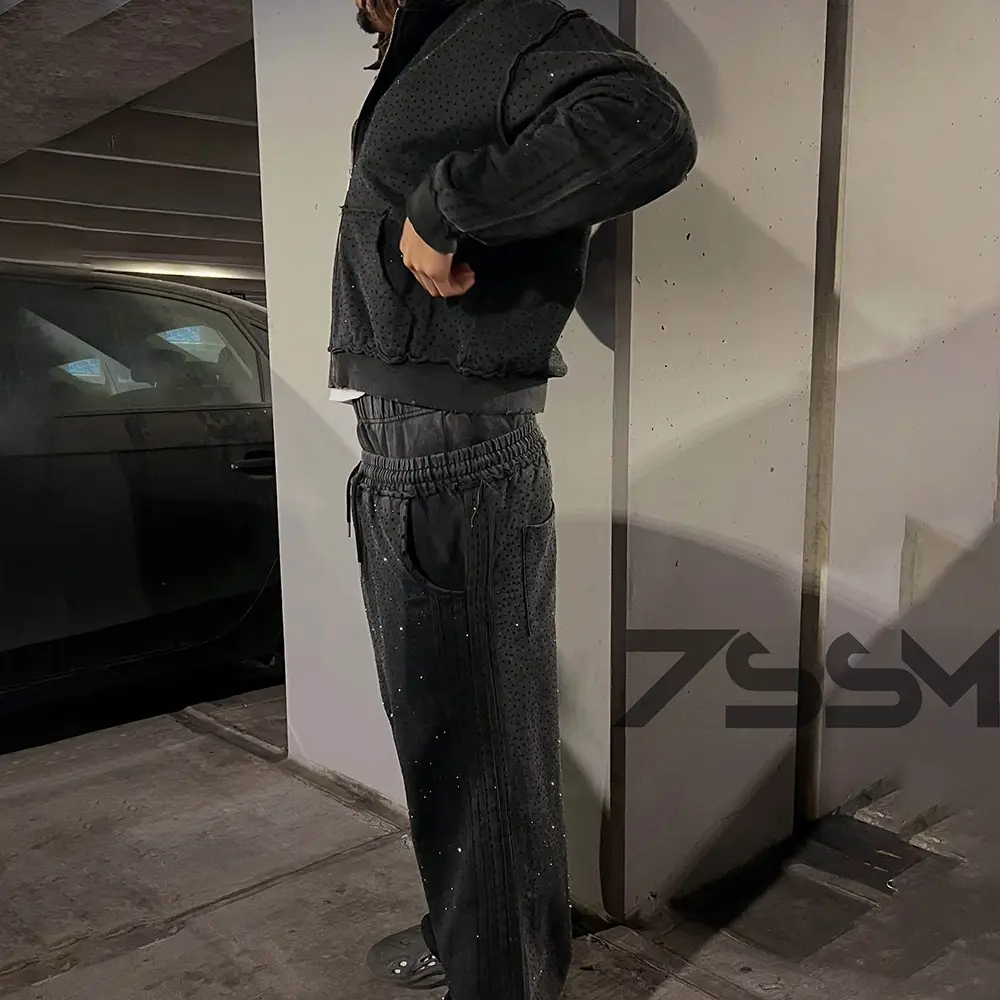 Custom Blank Full Print Rhinestone Zip up Hoodies Baggy Double Layer Waist Sweatpants Side Striped Jogger Set Track Suit for Men