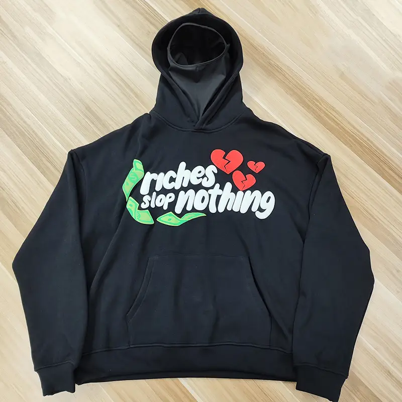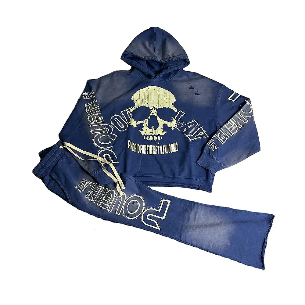 Men's Custom Logo Acid Wash Distressed 3D Pattern Jogging Suit Tracksuit Dtg Printing Raw Hem Sweatpants Hoodie Set for Winter