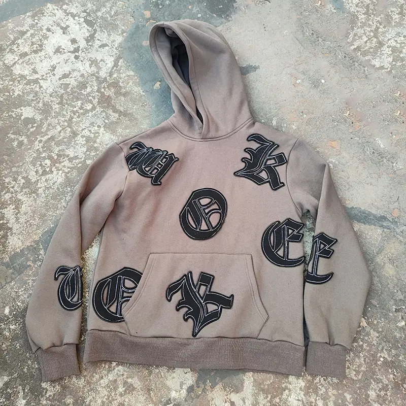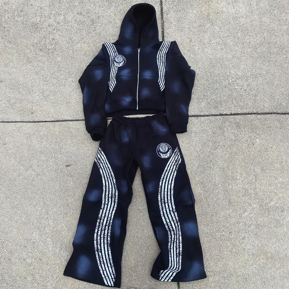 Custom Men's Outerwear Sets Cotton Baggy Cropped Boxy Side Stripe Applique Embroidery Acid Wash Zip Hoodies Sweat Pants